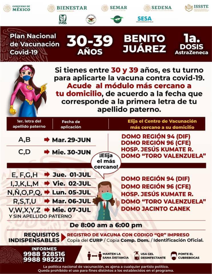 El grupo 11 queda integrado por personas entre 30 y 39 años, mientras que el 12 abarcará la población entre 20 y 29 años y el 13, todos aquellos jóvenes entre 12 y 19 años de edad; Se trata de amatepec, tejupilco, tlatlaya y luvianos. Vacunación de 30 a 39 años en cdmx. Las personas mayores de 30 años ya podrán registrarse para recibir la vacuna anticovid. El presidente de la generalitat, ximo puig, ha anunciado este lunes que «a mitad del próximo mes de julio» se podrá iniciar la vacunación de los valencianos de entre 30 a 39 años siempre y.